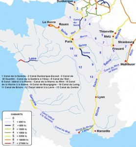 En Francia los canales comunican el Garona con el Ródano y el Sena, pudiendo de está forma poder navegar desde Burdeos a Marsella, Aviñón, Lyon, París, Lille y después Bélgica y Holanda, Estrasburgo y después Alemania.